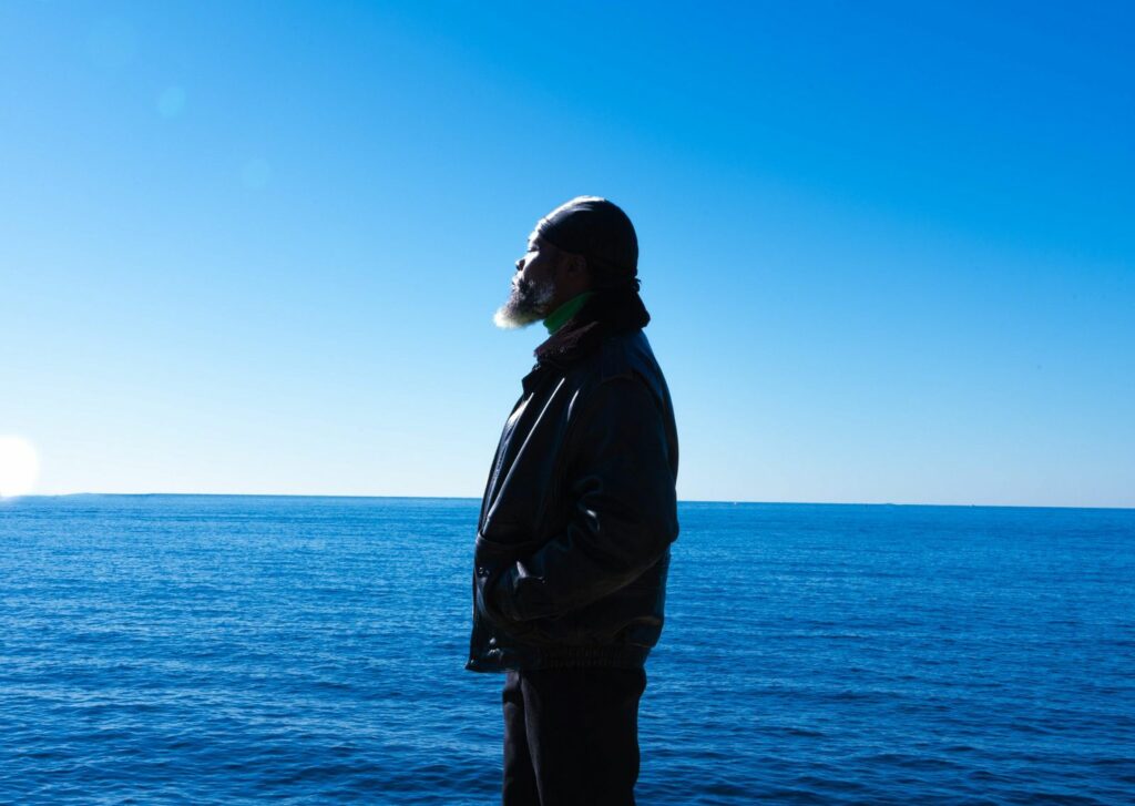 « Nous avons fait ce shooting en février, lorsque Gak tournait le clip de son morceau « Océan » après plusieurs années sans avoir rien sorti. Le tournage prenait place aux îles de Lérins par un temps magnifique. C’était idéal en termes de lumière et de couleurs. Je suivais pas mal le caméraman pour prendre mes photos dans la mesure où c’est quelqu’un qui s’y connaît et dont je supposais qu’il choisissait les bons spots. Cette photo ci en revanche, je l’ai prise alors qu’ils ne tournaient plus parce qu’à un moment j’ai flashé sur ce cadre splendide. J’ai sollicité Gak pour que l’on profite de la vue sur la mer et il a posé de lui-même, très naturellement. Il semble très apaisé, tout à fait en accord avec le paysage qui l’entoure. Comme il faisait très beau, les couleurs ressortent très bien à la lumière naturelle donc je n’ai pas énormément retouché la photo, contrairement à ce qu’on pourrait imaginer. Le contraste est naturel, j’ai un tout petit peu fait ressortir la silhouette de Gak. C’est une des premières photos que j’ai faites avec le Sony A7 IV que j’ai acheté lorsque j’ai voulu commencer à faire de la photo professionnelle. C’était très cool de tester ce nouvel appareil dans un tel contexte, d’autant plus que j’étais plus rompue aux photographies de concert qu’à ce genre de shooting. J’ai adoré l’expérience et ça m’a donné envie d’en faire plus. Cette photo est symétrique avec l’horizon droit, elle est très colorée et Gak a une expression très calme. À mon sens, c’est celle qui faisait le mieux écho à sa musique et à sa personnalité, je suis très fière d’elle. Je me lasse rapidement de mes photos en général, or celle ci, dix mois après, je l’aime beaucoup. »