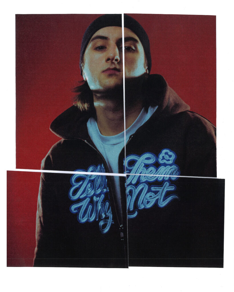 « J’ai fait cette photo de H JeuneCrack dans mon studio photo que je venais d’ouvrir à l’époque. H n’avait pas fait tant que ça de photos en studio, et il n’y en avait pas énormément non plus dans ce style sur l’Abcdr du Son, donc c’était l’occasion. J’ai choisi d’avoir un fond rouge pour rester dans l’esthétique de la pochette de son EP Premier Mouvement, l’idée étant d’avoir quelque chose dans la continuité de ce qu’il avait déjà établi. Les rappeurs ne sont pas mannequins, ils ne savent pas forcément poser, ou alors ils n’aiment pas ça, donc je me demandais comment un shoot en studio allait se dérouler avec lui. Au final il a été super participatif, et surtout assez à l’aise. Le découpage de l’image n’a pas été fait sur Photoshop : je suis allé l’imprimer sur une matière un peu cartonnée, je l’ai coupée, je l’ai collée sur une feuille blanche, et je l’ai ensuite scannée. C’est quelque chose que je ne fais pas souvent et que j’aimerais faire plus à l’avenir, c’est une façon de penser la photographie qui est super intéressante, tu construis, tu détruis, tu modifies… J’aime particulièrement cette image parce qu’il y a ce processus plus manuel : ça m’a poussé à sortir de ma zone de confort et à me dire « Ok, comment est-ce que je peux faire en sorte que l’image soit un peu différente de ce qu’on voit habituellement ? ». Cette photo propose quelque chose d’autre visuellement et c’est pour ça que je l’adore. »